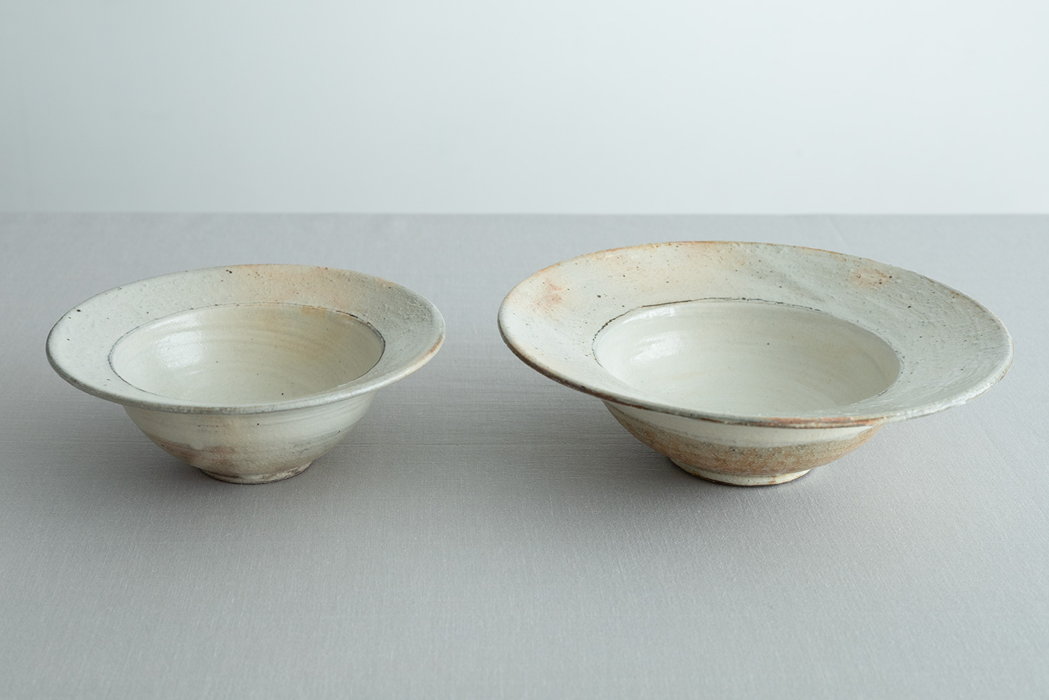 りんご鉢や彫刻シリーズをはじめ、定番の横彫・鉄線・ゴス線の各シリーズ、そして個展ならではの特別なモデルまで、種類豊富に並びます。食卓をやさしく彩ってくれる古谷さんの器を、どうぞ心ゆくまでお楽しみください。