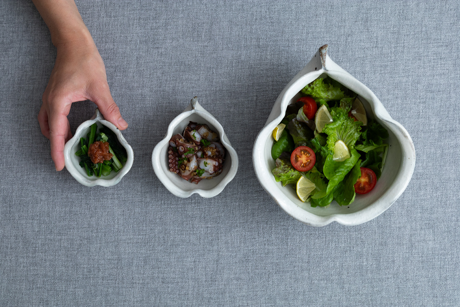右:キナリ洋梨鉢 中 4,400円(税込)