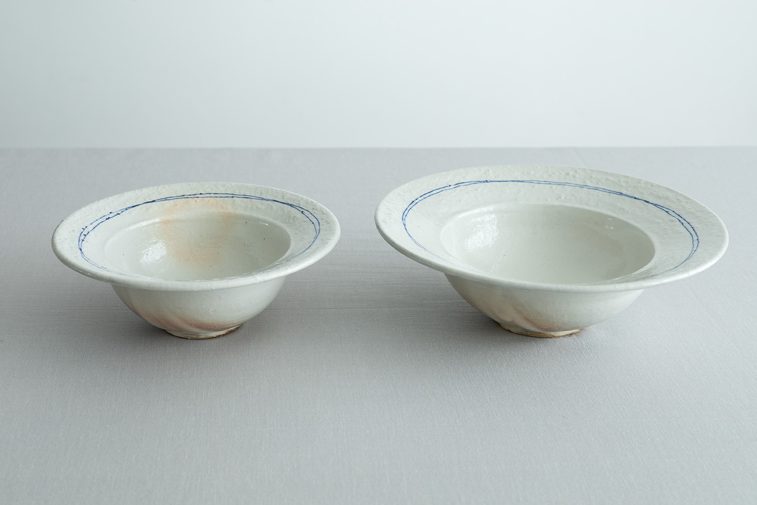りんご鉢や彫刻シリーズをはじめ、定番の横彫・鉄線・ゴス線の各シリーズ、そして個展ならではの特別なモデルまで、種類豊富に並びます。食卓をやさしく彩ってくれる古谷さんの器を、どうぞ心ゆくまでお楽しみください。